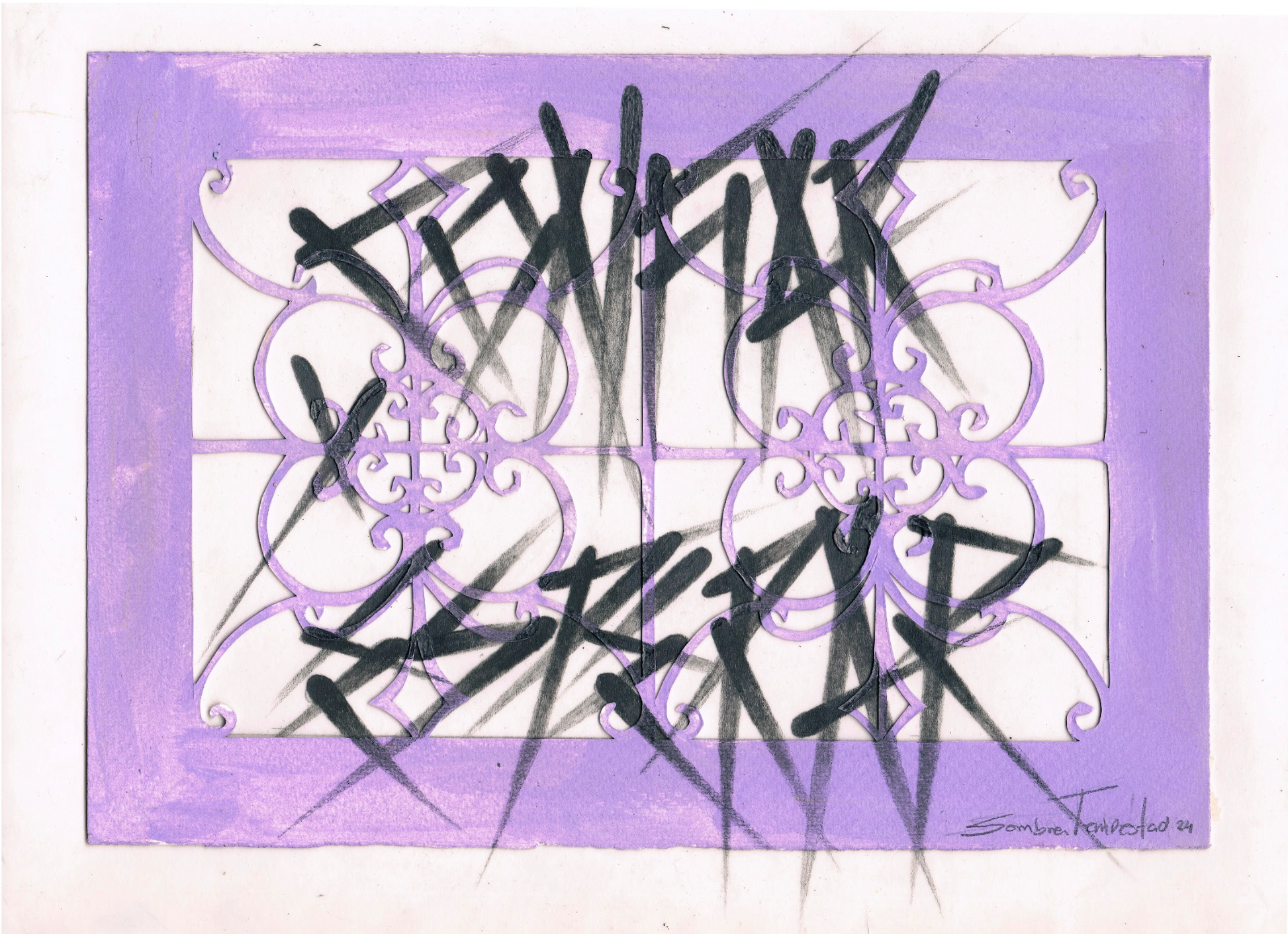 Collage de grafito y acrílico sobre papel calado de algodón 250g.