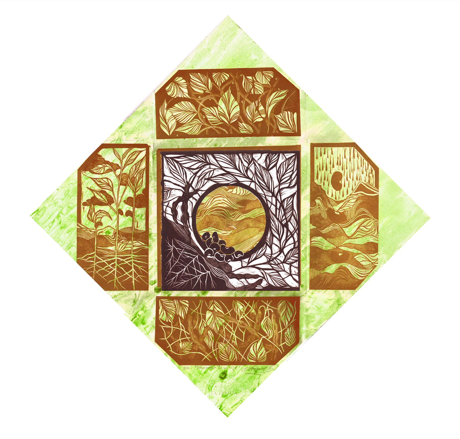Carpeta gráfica impresa sobre papel de algodón 300 gr., teñida con antotipia de espinaca