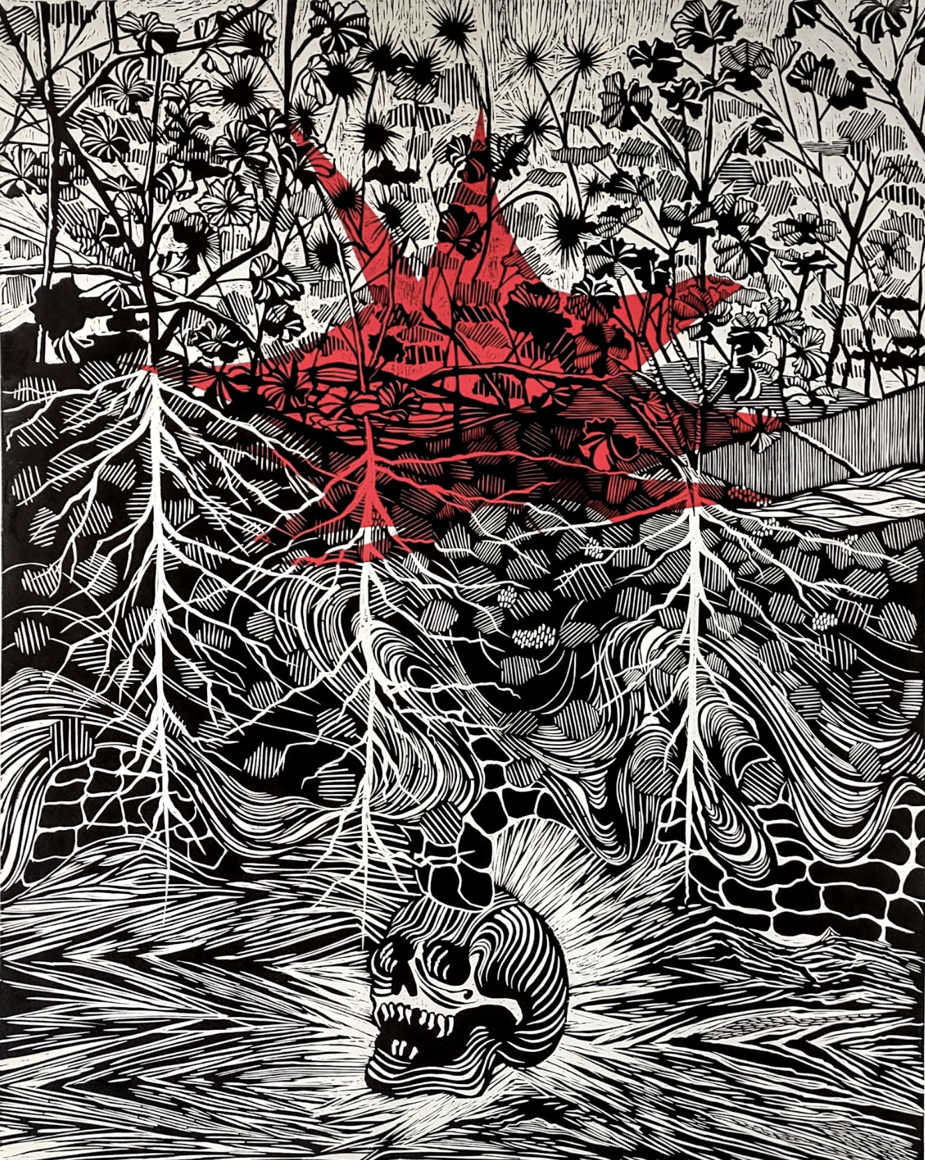 Linograbado y chine colle sobre papel de algodón 250 gr.